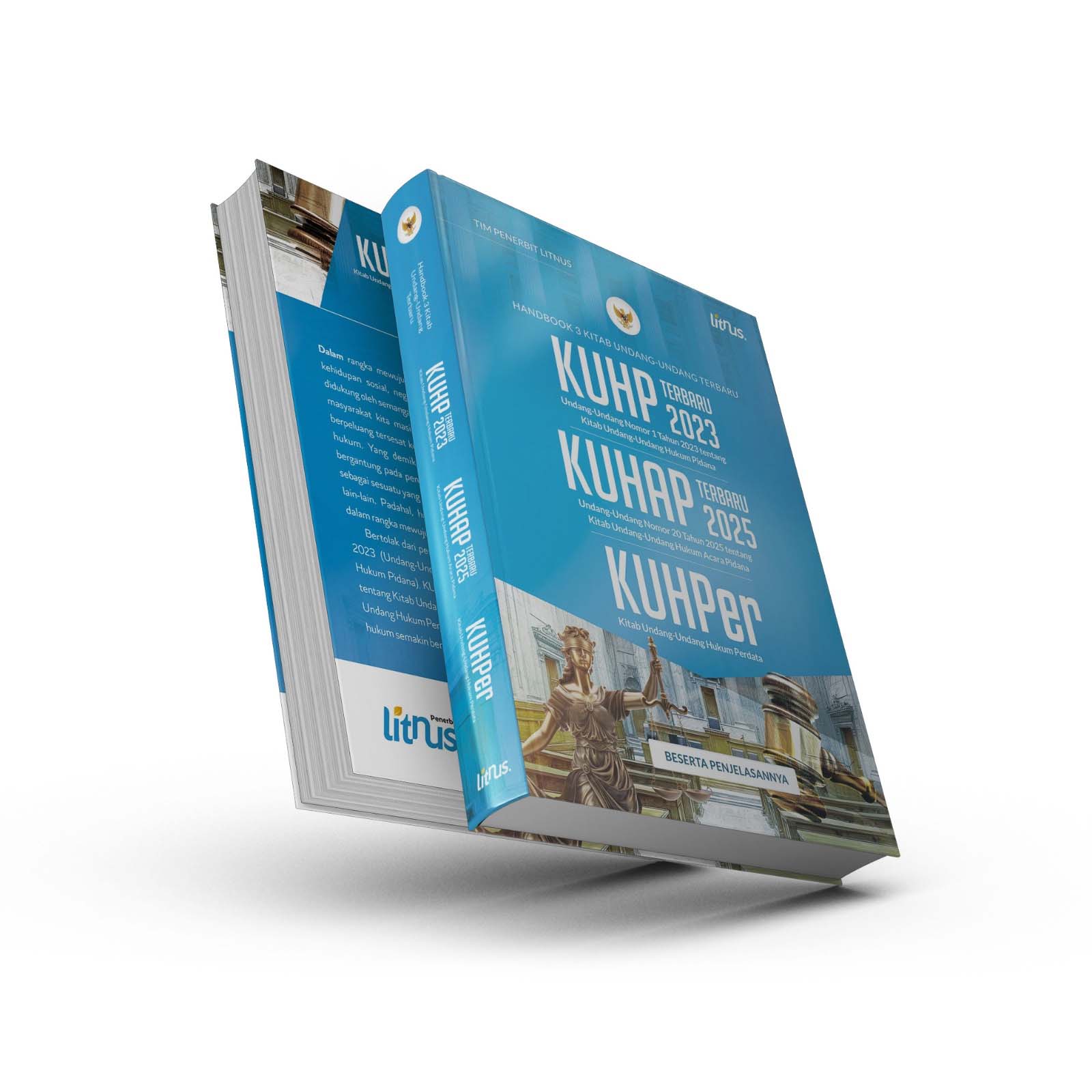 Sebagai negara yang diatur berdasarkan hukum (Rechtsstaat) dan menjadikannya landasan normatif untuk segala urusan kehidupan, Indonesia menjamin keamanan dan kenyamanan warganya dari ancaman kesewenang-wenangan penguasa (Maachsstaat). Konsekuensinya, terdapat ketentuan hukum yang mengikat seluruh warga negara, termasuk penguasa, tanpa pandang bulu. Hal ini dimaksudkan untuk memanifestasikan fungsi hukum sebagai kontrol sosial sekaligus perubahan kehidupan sosial. Dalam rangka mewujudkan kedua fungsi hukum tersebut, negara perlu melakukan pembinaan secara sistematis yang didukung oleh semangat dan tanggung jawab semua pihak. Hanya saja, hingga hari ini masyarakat kita masih sangat beragam dalam menginterpretasikan hukum dan berpeluang tersesat ke dalam pemahaman yang sempit atau bahkan keliru seputar hukum. Yang demikian dapat terjadi karena pemahaman hukum seseorang bergantung pada pengalaman yang dirasakan. Adakalanya hukum hanya dipahami sebagai sesuatu yang memberatkan, seperti pemenjaraan, eksekusi mati, denda, dan lain-lain. Padahal, hukum sebenarnya sangat memprioritaskan faktor kegunaan dalam rangka mewujudkan dua fungsi di atas. Bertolak dari persoalan tersebut, kami menyusun buku pegangan yang memuat KUHP Terbaru 2023 (Undang Undang Nomor 1 Tahun 2023 tentang Kitab Undang-Undang Hukum Pidana), KUHAP Terbaru 2025 (Undang Undang Nomor 20 Tahun 2025 tentang Kitab Undang-Undang Hukum Acara Pidana), dan KUHPer (Kitab Undang-Undang Hukum Perdata) agar wawasan dan kesadaran masyarakat terhadap hukum semakin berkembang.